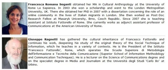 – Fattorello’s Social Technique of Information is a communication model written in the ’50s that has always focused on audiences as active participants, as the pivot of the process of communication. Fattorello’s theory has always been in contrast with Anglo-Saxon theories. While these focused on the quality of the media product thinking that what a few considered to be a “good” product could be embraced by a variety of recipients, the Social Technique of Information’s main principle is that each media product has to be constructed by adapting the message to the expectations and the acculturaion of each specific audience.