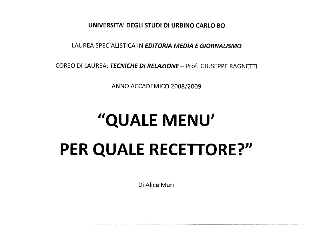 Corso di Laurea: Tecniche di Relazione – Prof. Giuseppe Ragnetti